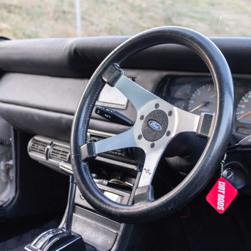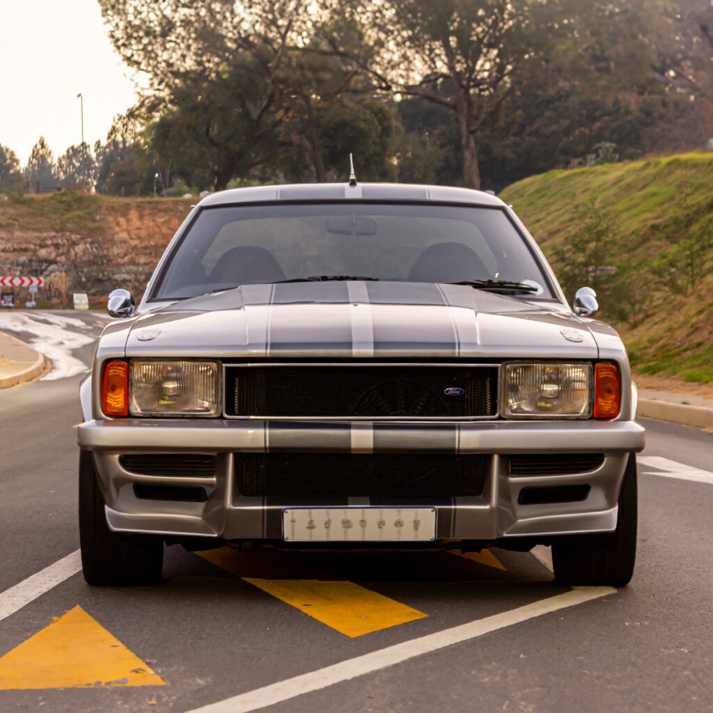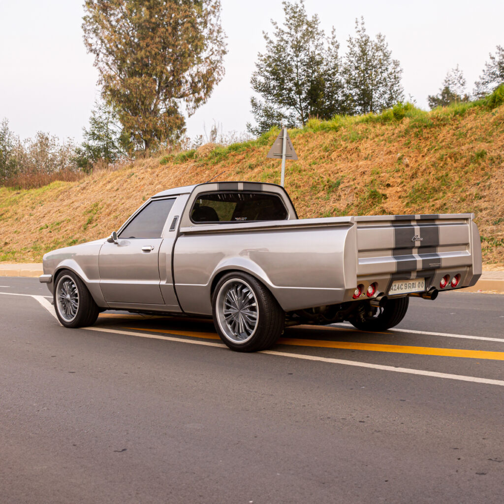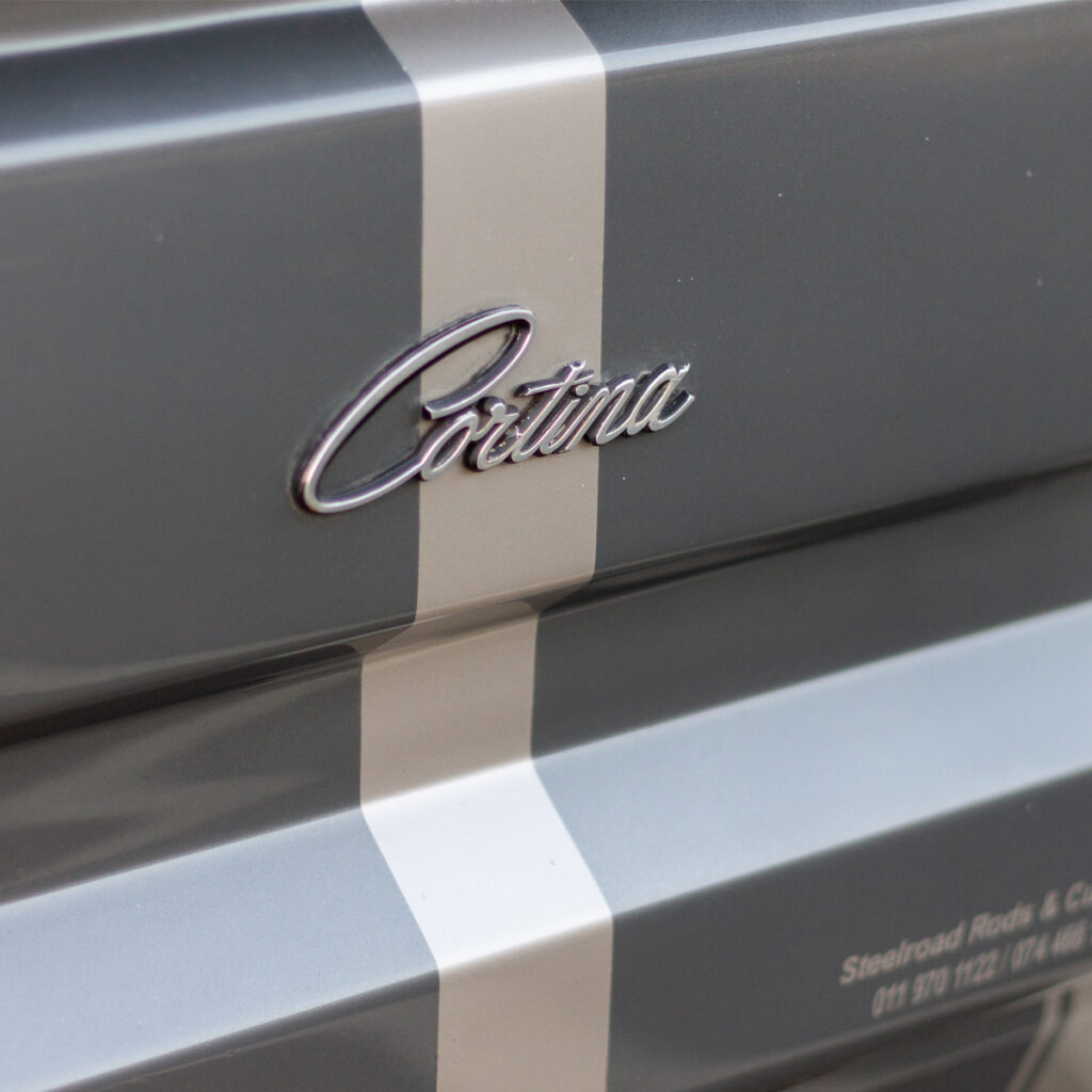 A Labor of Love: The transformation wasn’t just under the hood. Willie and his team at Steelroad Rods & Customs poured their souls into every inch of the Cortina’s bodywork. Fender flares, front spoilers, and bonnet scoops were meticulously fabricated, while a custom Sikkens-based silver paint job with a hint of red pearl brought the bakkie to life.